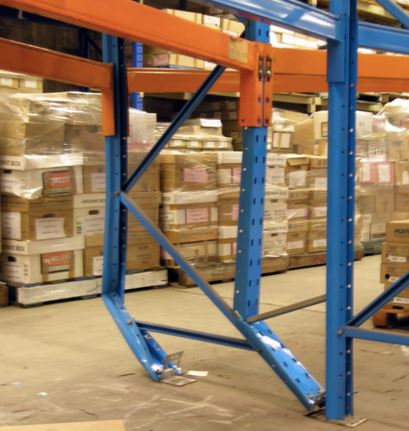 Misaligned diagonal braces should be easy to spot. Diagonal bracing absorbs any blow a rack might take if it becomes physically twisted or struck forcefully. Diagonals that are snapped or sprung require attention immediately because they will pose a dangerous situation if left unattended.